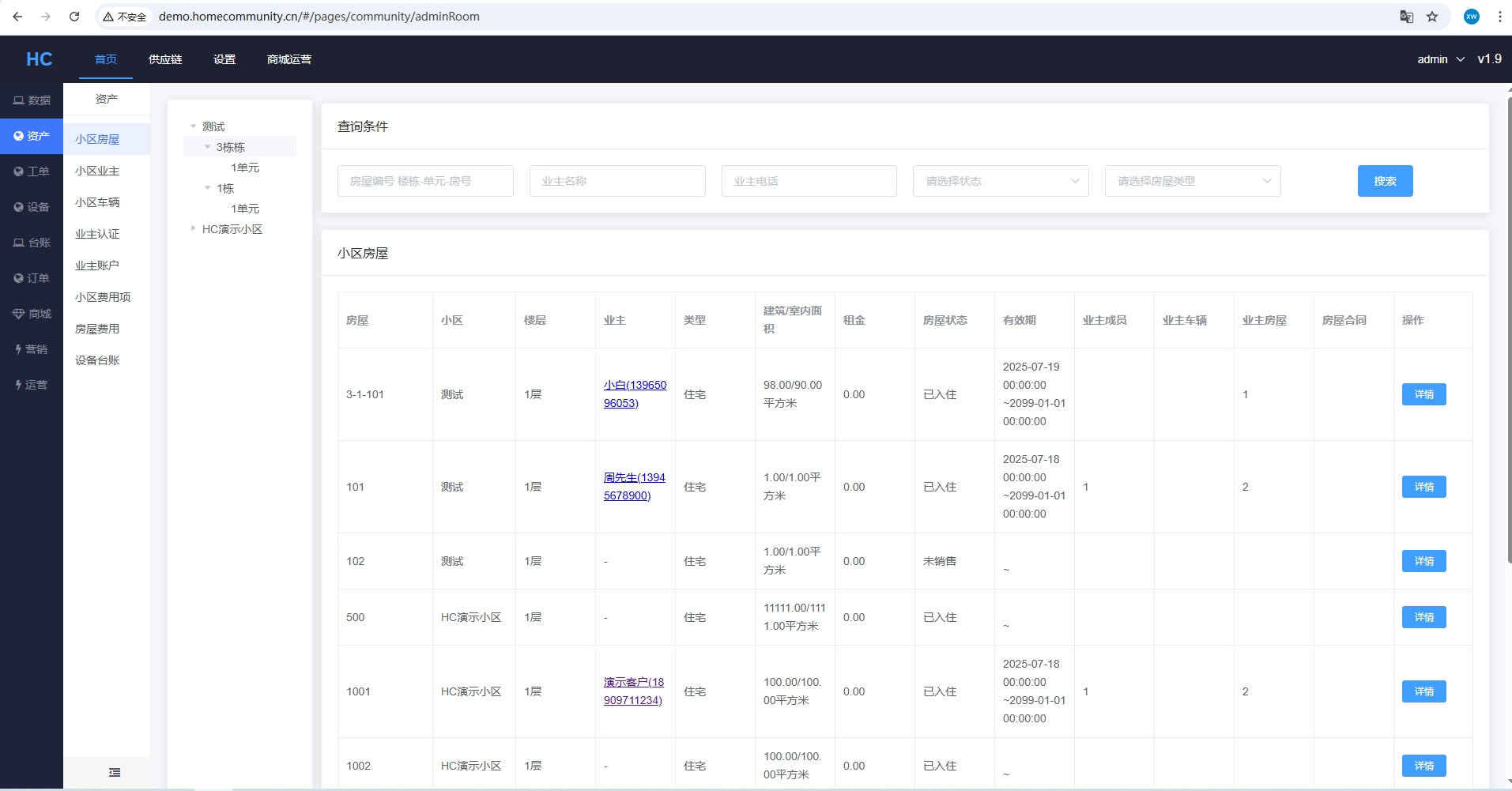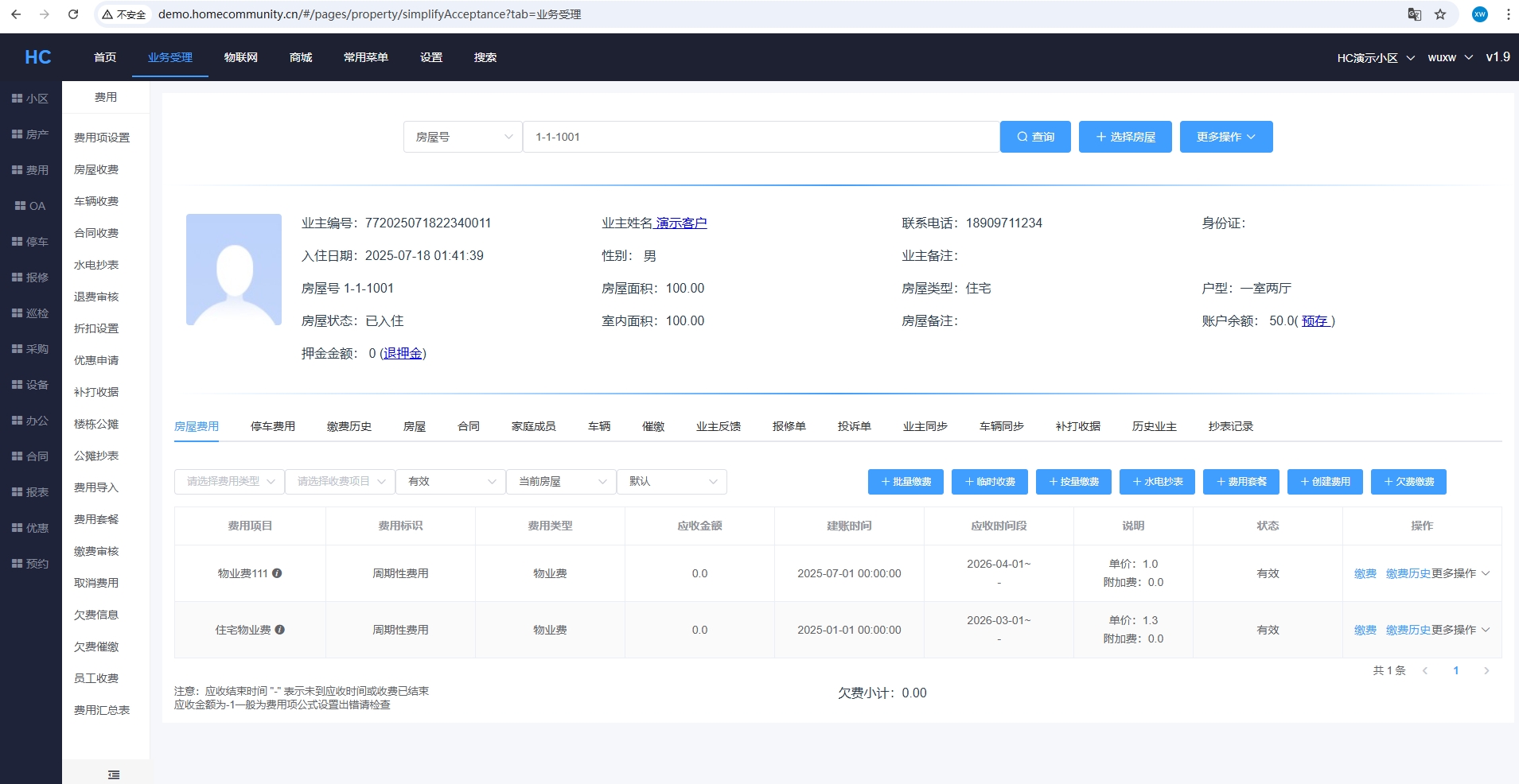 HC小区管理系统是一套saas物业管理的系统包括 房产、业主、 费用 (可以线上缴费)、报修(可以线上报修)、投诉建议、采购、巡检、停车、门径、道闸、监控、工作流、问卷和公告等功能。