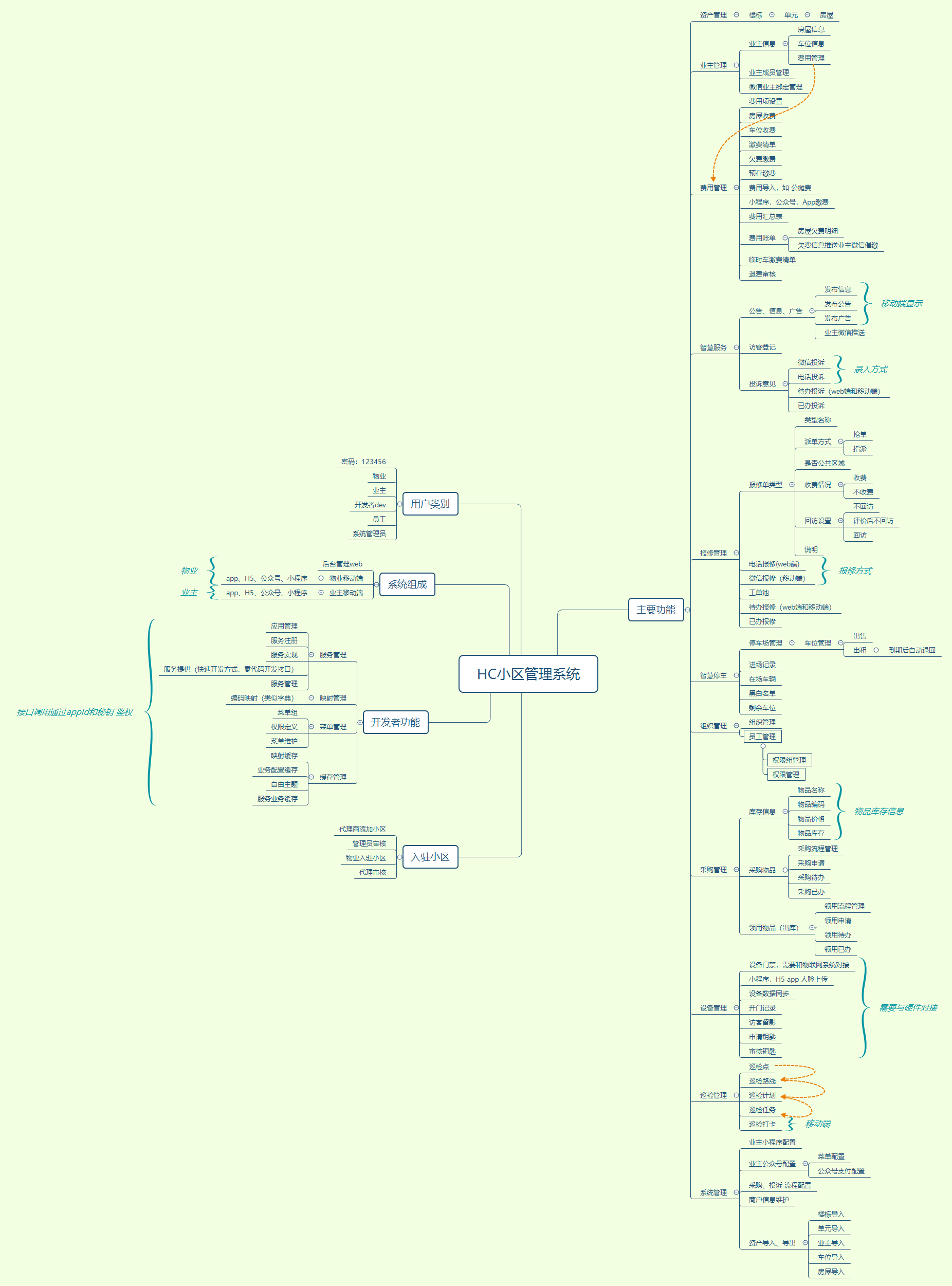 HC小区管理系统是一套saas物业管理的系统包括 房产、业主、 费用 (可以线上缴费)、报修(可以线上报修)、投诉建议、采购、巡检、停车、门径、道闸、监控、工作流、问卷和公告等功能。
